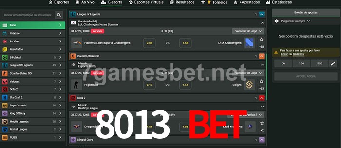 O 8013 Bet oferece uma grande seleção de opções de apostas em e-sports com probabilidades competitivas